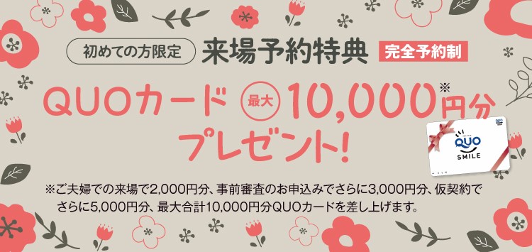 ご夫婦で新規来場の方にはクオカード最大10,000円